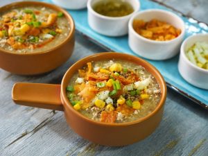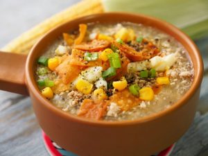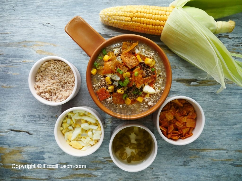 Chicken stock mein shredded chicken,grinded corns,chines salt aur chicken powder dal ker ache tarhan mix karein aur halki ancch per 30 minutes kliya paka lein aur bech bech mein chamcha chalatay rahein.