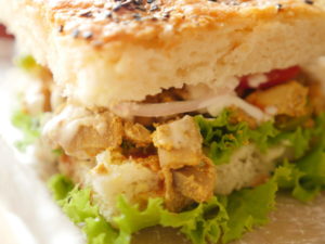 Cut naan into four pieces,add tomato ketchup,salad leaf,chicken filling,tomato,onion,mayonnaise and cover with top bun & serve.
