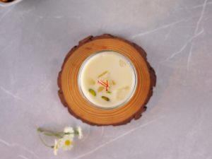 -In a wok, add badam zafran flavoured milk, bring it to boil.