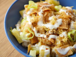 -Cut green garlic into 3-4 inch pieces.