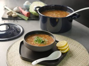 In pot,add chicken,carrot,onion,ginger,garlic,fresh coriander,water and bring it to boil,cover and cook on low flame for 1 hour then take out chicken pieces,shred it & set aside for later use.Chicken stock is ready!