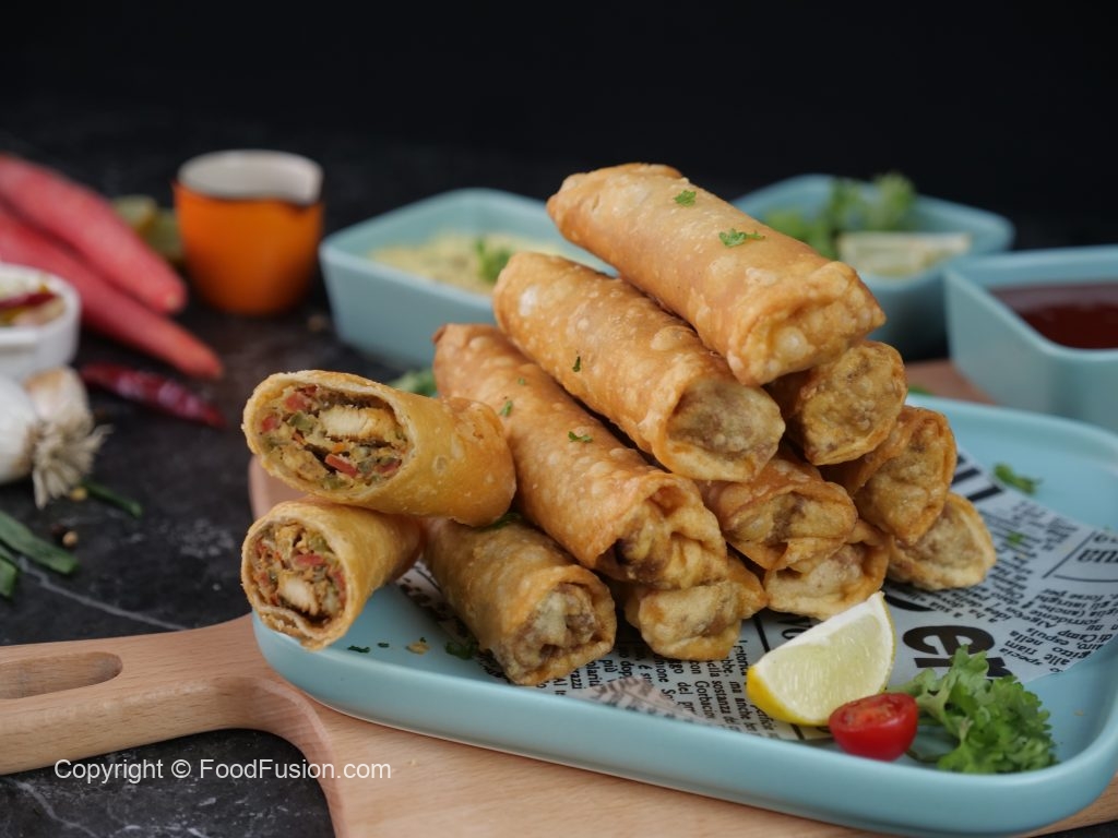 A great new fusion to bring shawarma and spring rolls in one fantastic video. Shawarma Spring Rolls – Make and freeze recipe. Methods for air frying and deep frying also given. #FoodFusion #HappyCookingToYou #FoodFusion
