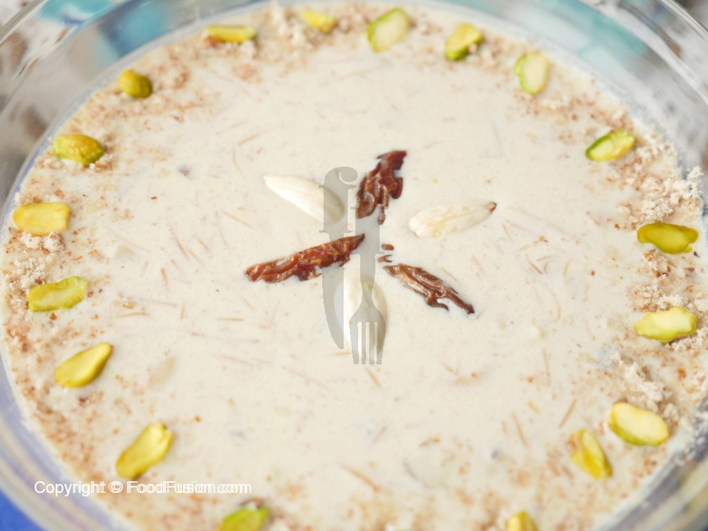Doodh mein fried sawaiyan dal ker ache tarhan mix ker lein aur halki ancch per 3-4 minutes kliya paka lein.