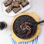 -On a greased 5 x 8” inch baking pan lined with butter paper,add brownie batter,spread evenly & tap few times.