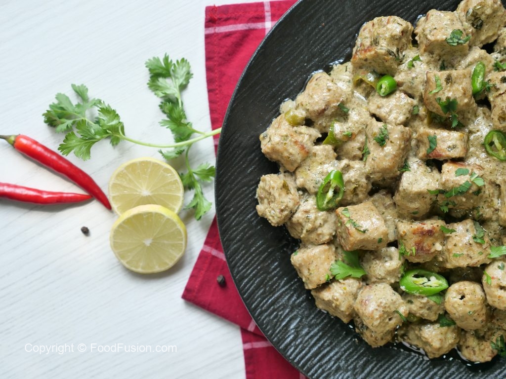 -In a large griddle,add cooking oil & fry steamed cooked kababs (10 kababs) on medium flame from all sides until golden than cut all the kababs in 1-inch pieces & cook for a minute.
