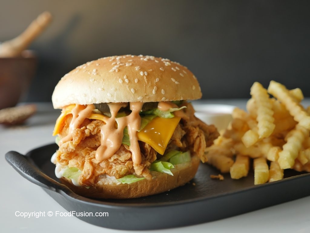Spicy Crispy Chicken Burger , a recipe like never before. Now you can enjoy restaurant quality taste at home #HappyCookingToYou #Dashi #FoodFusion