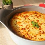 In an oven safe pot,add a layer of sliced & boiled potatoe,cooked chicken mince,mozzarella cheese and fresh coriander,repeat the layer one more time and top with boiled potatoes and pour the egg & cream mixture and mozzarella cheese.