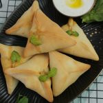 -Chota rolled dough lein,1 tbs spinach & walnut filling aur feta cheese dal dein aur edges per pani laga lein.