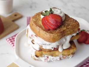 -Add 2 tbs of strawberry cream mixture & flip slice on another slice.