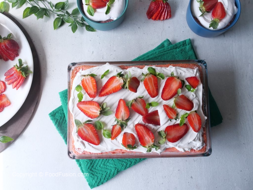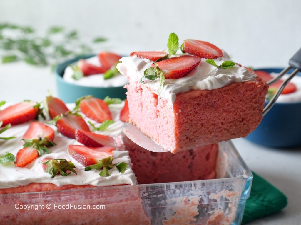 Just like you get at bakeries Strawberry Tres Leches Cake. Now make it at home and enjoy your day. #HappyWomensDay #WomensDaySpecial #FoodFusion #HappyCookingToYou #PakolaMilk