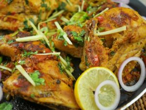 -In chicken, yogurt, tomato ketchup, ginger garlic paste, tikka masala powder, red chilli powder, cumin, pink salt, cooking oil & mix well.