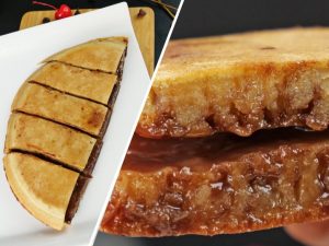 - Add ⅓ Cup of crepes batter & add in pre heated greased pan (7-inches) spread evenly, cook on low flame until light golden from both sides. (Makes: 10)