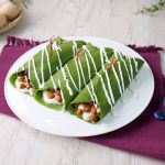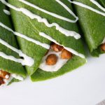 -Crepe per tayyar dahi sauce & tayyar spiced (masala) chickpea dal ker crepe ko fold ker lein.