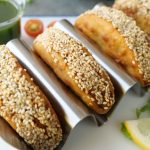 -Grease taco samosa with cooking oil & air fry in preheated air fryer at 180C for 18-20 minutes (flip after 10 minutes in between).