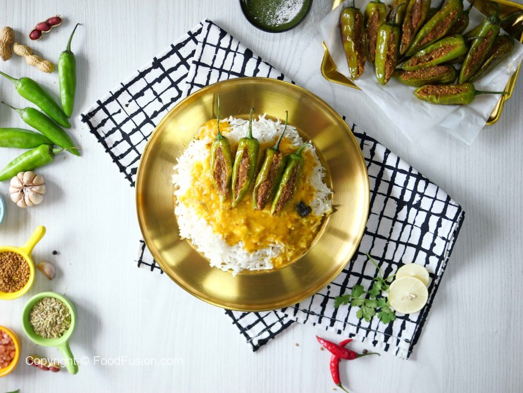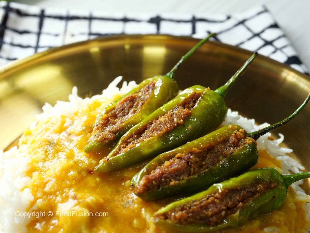 -Hari mirch ko beech se cut ker lein aur tayar filling bhar dein.