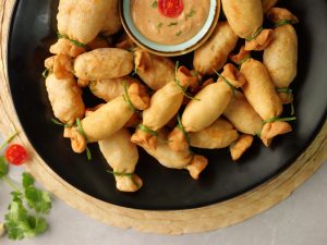 -In a wok,heat cooking oil (150°C) & fry on low flame until golden & crispy (makes 15-16).