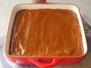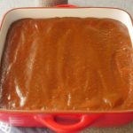 Slowly pour the milk mixture over the top of the cake,filling holes.