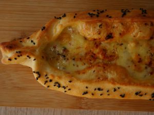 Brush the edges/sides of the dough with egg+butter mixture and sprinkle nigella seeds.