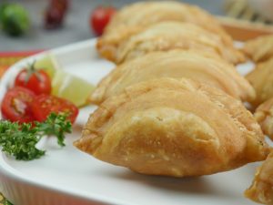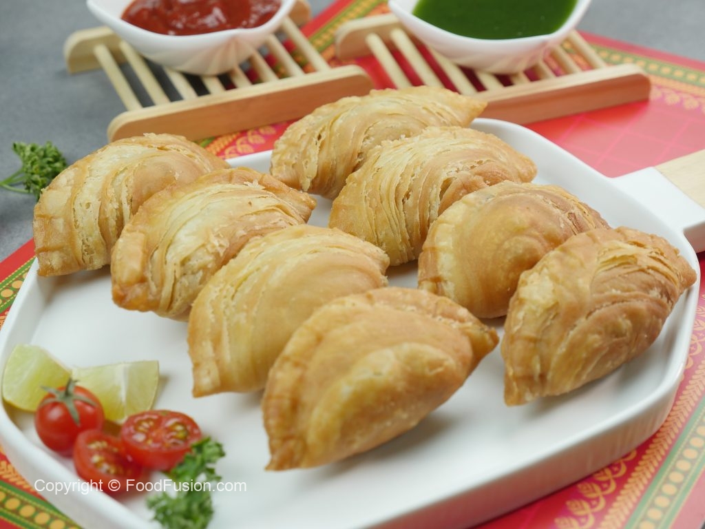 Dough ko samosa maker mein rakh ker tayyar chicken filling ko center mein dal dein,edges per pani laga lein aur samosa maker ko bund ker dein aur excess dough ko nikal lein (makes 24-25).