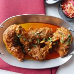 In pot,heat cooking oil and fry chicken pieces on medium flame until golden brown (approx. 15-20 minutes) & set aside.