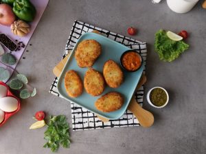 -Dip the cutlets in whisked egg & coat with breadcrumbs (makes 14-15).