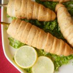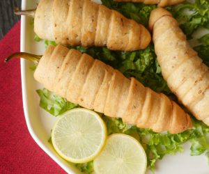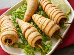 Strip lein aur pani laga ker green chili per twist ker ka lapeet lein (makes 6-8) aur 15 minutes kliya freeze ker lein.