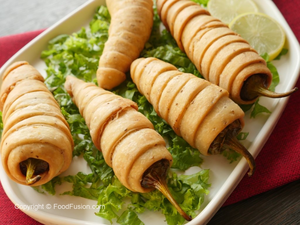 Baking tray ko oil sa grease karein aur wrapped green chilies rakh ker anda laga lein.